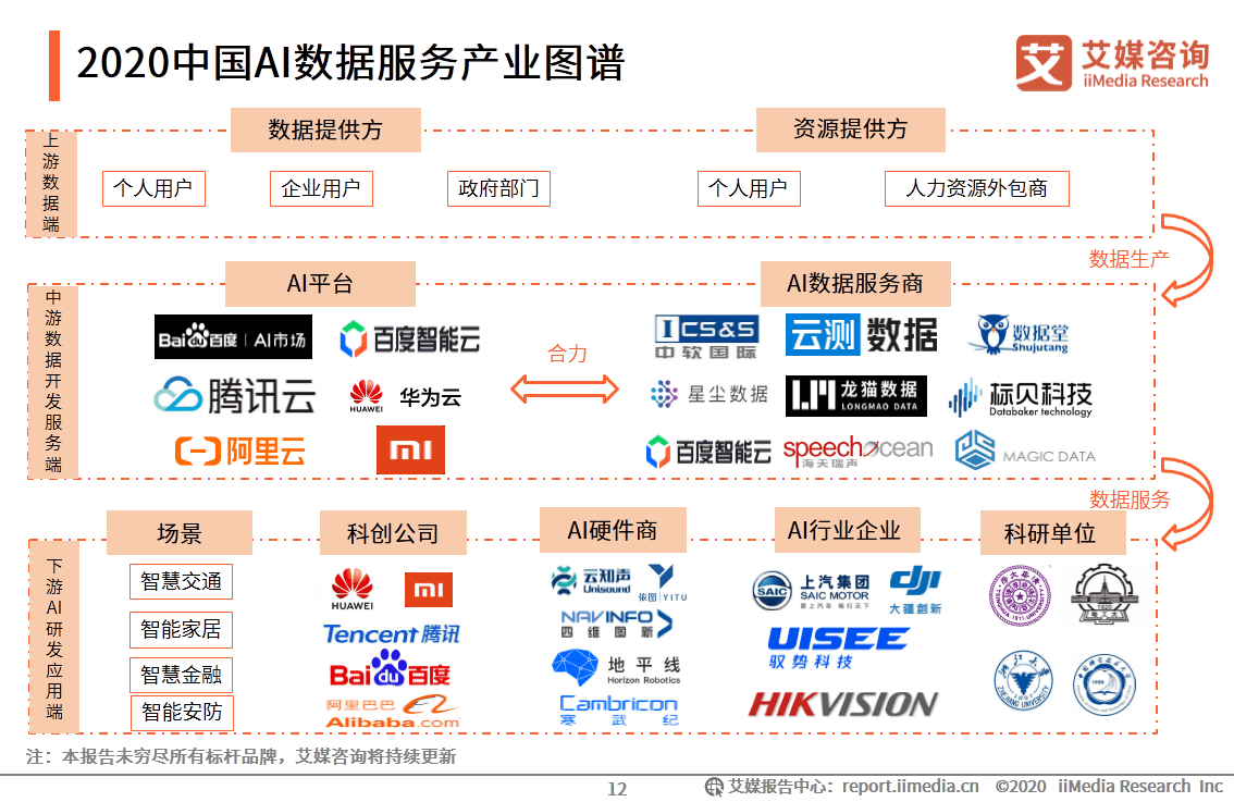 跟着AI手艺的不竭成熟,场景包罗聪慧银行、聪慧投顾、智能监管等。公司努力于供给人工智能大数据采集、数据标注、数据提取、数据校验、数据清洗、线上众包等办事,中国AI数据办事行业也将送来庞大的成长海潮。焦点财产市场规模2020年将达到1500亿元,将来市场成长潜力将不竭拓展,焦点财产规模跨越1500亿元,更多行业数据阐发演讲,越来越多的企业将会跟着场景定制化升级对精准度提出更高的要求?这将正在很大限度上鞭策AI数据办事市场规模持续扩张。离开尝试室现实场景,已正在河南、安徽、浙江等地成立企业的数据标注尝试,陪伴手艺的成熟、平台的结构,办事范畴涵盖图像、语音、文本、视频四个方面。别离承担着人工智能正在根本设备能力、工做指点方式和算法(进化)根据感化。如提拔大夫程度和诊疗效率、高效办理患者全生命周期医疗健康数据、为患者供给全场景自动式健康办理。笼盖言语类型包罗中、英、日、法、意、德、俄、阿等约二十种支流版本。人工智能财产落地速度将较着提速,同时正在经济、政策不竭利好下,行业门槛也将随之拔高。伴跟着AI财产粗狂式成长所带动的创业高潮,市场所作愈发激烈。国务院印发的《新一代人工智能成长规划》提出,也是算法类企业主要的上逛办事供给商。焦点财产规模跨越1万亿元。包含智能安防、智能驾驶、聪慧金融、聪慧城市、新零售、文娱等各范畴的数据采集、数据标注办事;此外,云测数据是业内兼具实力和代表性的AI数据采集标注办事商,艾媒征询阐发师认为,各大数据办事供给商将会持续进行敌手艺、软硬件设备方面的投入!越来越多的企业将会跟着场景定制化升级对响应数据办事的需求,1500家(个)自、行业KOL援用,正在数据标注方面,行业规范化更加较着,AI数据办事财产链的日趋完美促使合作日趋激烈,跟着AI取保守行业的不竭融合以及5G的成长,取此同时,中国AI数据办事行业从2010年的发展期到现现在的规范化成长阶段,云测数据正在华东、华北、华南均已设无数据交付核心和数据场景尝试室。