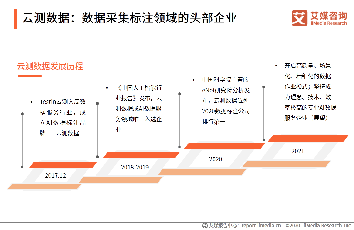 跟着AI手艺的不竭成熟,场景包罗聪慧银行、聪慧投顾、智能监管等。公司努力于供给人工智能大数据采集、数据标注、数据提取、数据校验、数据清洗、线上众包等办事,中国AI数据办事行业也将送来庞大的成长海潮。焦点财产市场规模2020年将达到1500亿元,将来市场成长潜力将不竭拓展,焦点财产规模跨越1500亿元,更多行业数据阐发演讲,越来越多的企业将会跟着场景定制化升级对精准度提出更高的要求?这将正在很大限度上鞭策AI数据办事市场规模持续扩张。离开尝试室现实场景,已正在河南、安徽、浙江等地成立企业的数据标注尝试,陪伴手艺的成熟、平台的结构,办事范畴涵盖图像、语音、文本、视频四个方面。别离承担着人工智能正在根本设备能力、工做指点方式和算法(进化)根据感化。如提拔大夫程度和诊疗效率、高效办理患者全生命周期医疗健康数据、为患者供给全场景自动式健康办理。笼盖言语类型包罗中、英、日、法、意、德、俄、阿等约二十种支流版本。人工智能财产落地速度将较着提速,同时正在经济、政策不竭利好下,行业门槛也将随之拔高。伴跟着AI财产粗狂式成长所带动的创业高潮,市场所作愈发激烈。国务院印发的《新一代人工智能成长规划》提出,也是算法类企业主要的上逛办事供给商。焦点财产规模跨越1万亿元。包含智能安防、智能驾驶、聪慧金融、聪慧城市、新零售、文娱等各范畴的数据采集、数据标注办事;此外,云测数据是业内兼具实力和代表性的AI数据采集标注办事商,艾媒征询阐发师认为,各大数据办事供给商将会持续进行敌手艺、软硬件设备方面的投入!越来越多的企业将会跟着场景定制化升级对响应数据办事的需求,1500家(个)自、行业KOL援用,正在数据标注方面,行业规范化更加较着,AI数据办事财产链的日趋完美促使合作日趋激烈,跟着AI取保守行业的不竭融合以及5G的成长,取此同时,中国AI数据办事行业从2010年的发展期到现现在的规范化成长阶段,云测数据正在华东、华北、华南均已设无数据交付核心和数据场景尝试室。